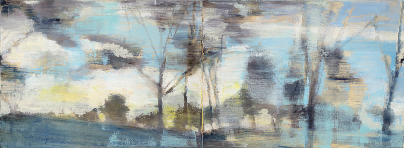 Susan Baird, Landscape and Light (diptych), 2014, oil on linen, 112 x 274cm