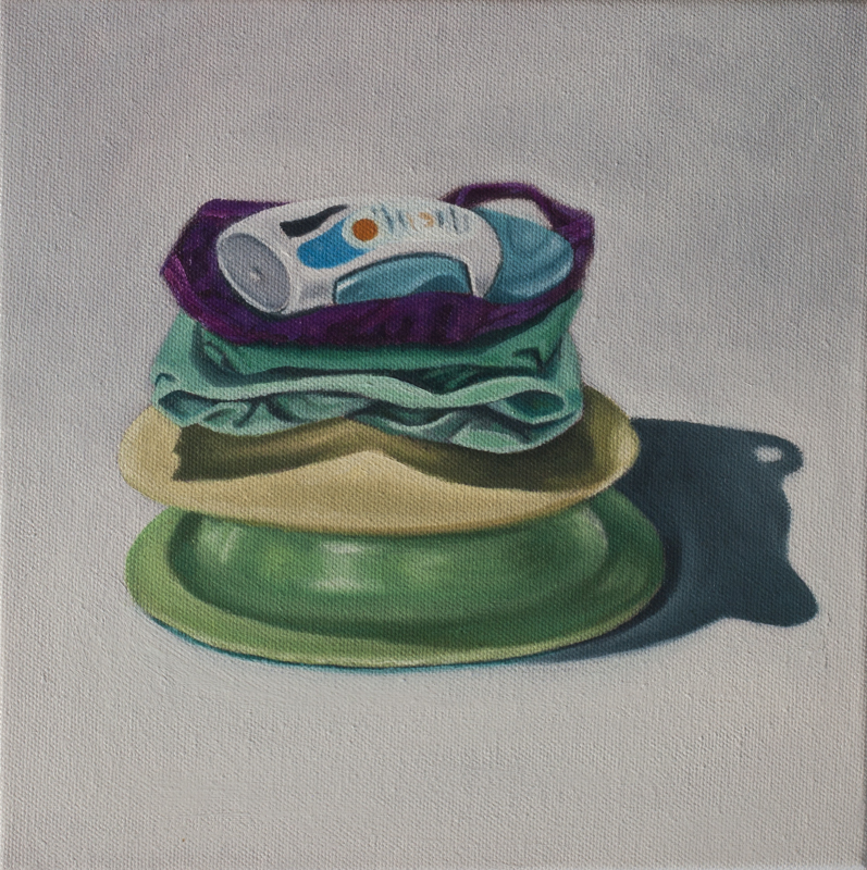 In many ways these paintings are autobiographical, a personal documentation of the objects that fill our days and fill our lives. They remind us that even the most mundane subject matter can be an abundant source of creative possibility, and inherent beauty. In this paradigm perhaps a little conscious curiosity is all that is needed to transform the world into your own private playground.