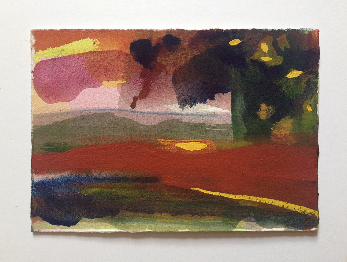 While the natural world forms a starting point, John’s works are fuelled more by poetic imaginings and luminous memories than a realistic description of place. These small paintings on paper, with their bold colour and free-flowing brush strokes take us on a vivid journey to far away places.