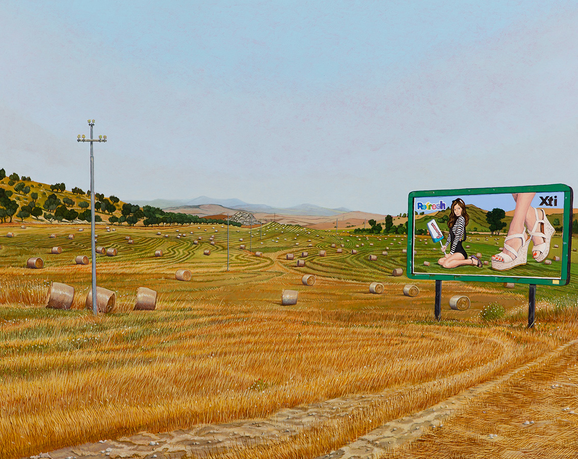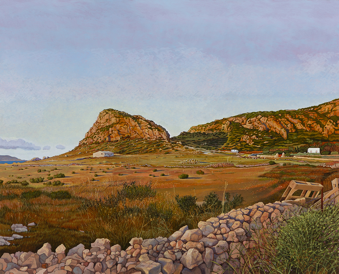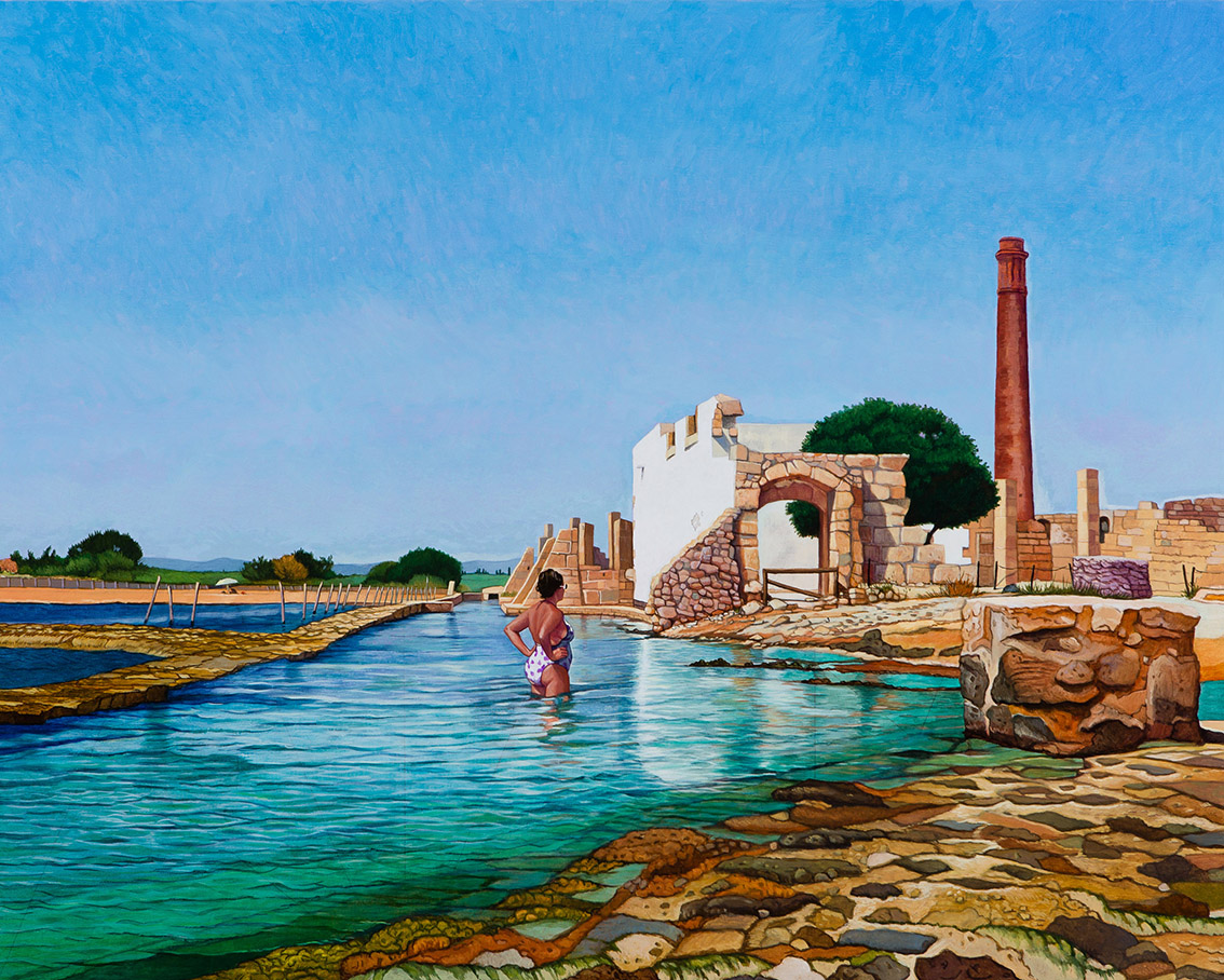 Yet while acknowledging the darkness, this exhibition celebrates the natural beauty and cultural richness of Sicily that continues to endure. Subtle symbolic cues still exist in the works (Bottaro always enjoys posing a visual riddle for his viewers), yet he has removed much of the allegorical and mythical content prevalent in his previous paintings. What remains is an openness – a visual and psychological sense of space that allows the physical environment with its signs of ancient and modern life, to do the talking.