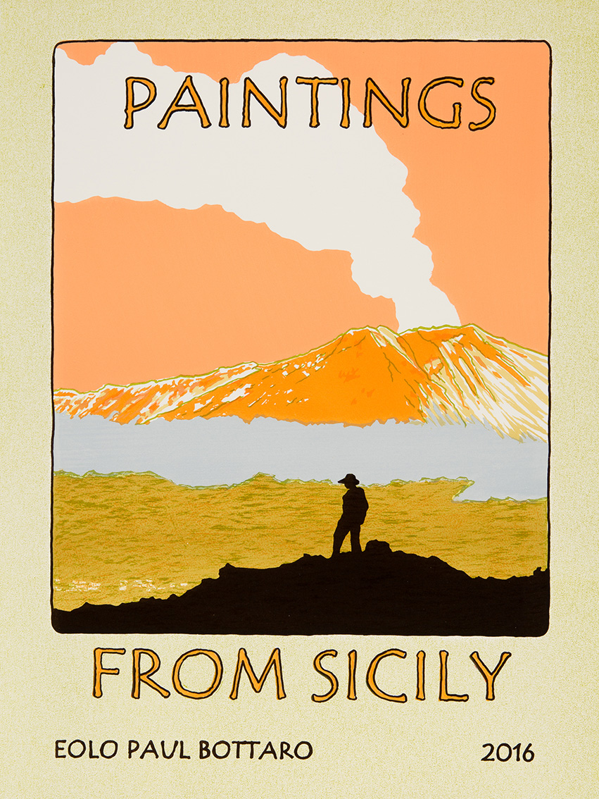 In the artist statement for this exhibition, Eolo Paul Bottaro writes “Sicily has always been present in my work, because it has been present in me.” A brief survey of his last eight solo exhibitions reveals the truth in these words. This distant land of his ancestors, girt by the cerulean waters of the Mediterranean has long fired Bottaro’s artistic imagination, and he has painted various Sicilian themes and locations intermittently over the years. From the snow-covered slopes of Mount Etna, the active volcano that regularly erupts above the city of Catania, to the dry golden hills of the economically impoverished provence of Enna. Each exhibition over the past 15 years has featured at least one major work based on Sicily.